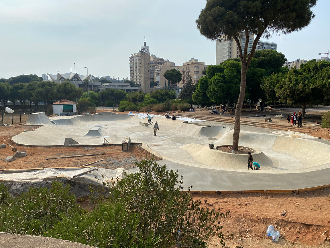 During the Eid al-Adha, an Islamic holiday, most Jordanians would be not working and spending time celebrating with family, and as such 7Hills programming was not happening that week. Mohammad Zakaria, an artist, skateboarder, and founder of 7Hills, was heading to Beirut, to work with Make Life Skate Life, an organization that was building Lebanon’s first public skatepark with a volunteer crew of local and international skateboarders. We reached out to see if they needed more hands, and I was on a plane, headed to Beirut to help with the construction for eight days. I got there very late and made my way to the hostel where all volunteers were being put up. There, I met two German volunteers who were on their way home. They welcomed me and I tagged along with them as they went to the construction site one last time to say goodbye to the crew still at the site working late into the night.